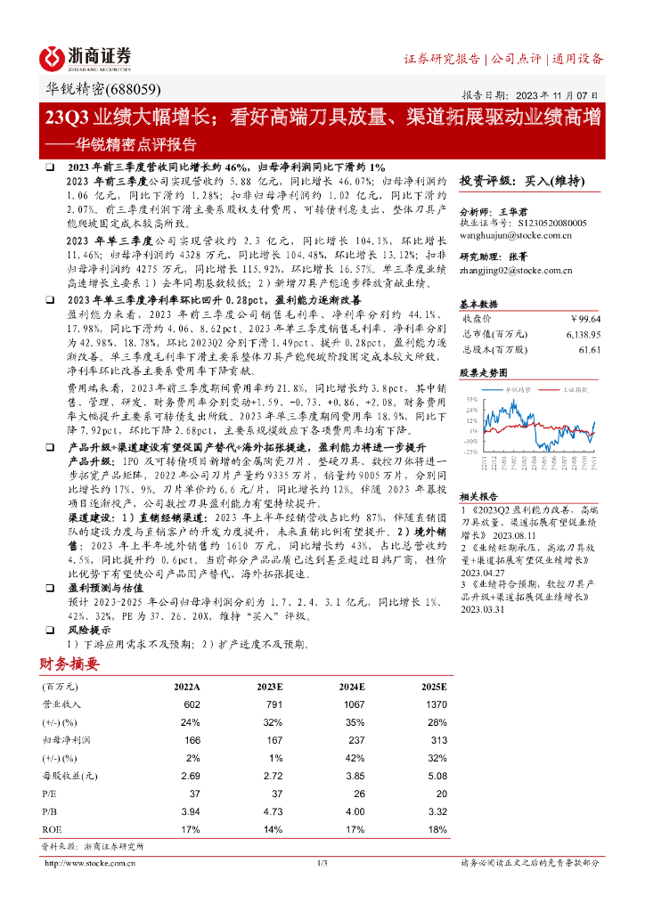 浙商证券:华锐精密点评报告:23Q3业绩大幅增长;看好高端刀具放量、渠道拓展驱动业绩高增.pdf