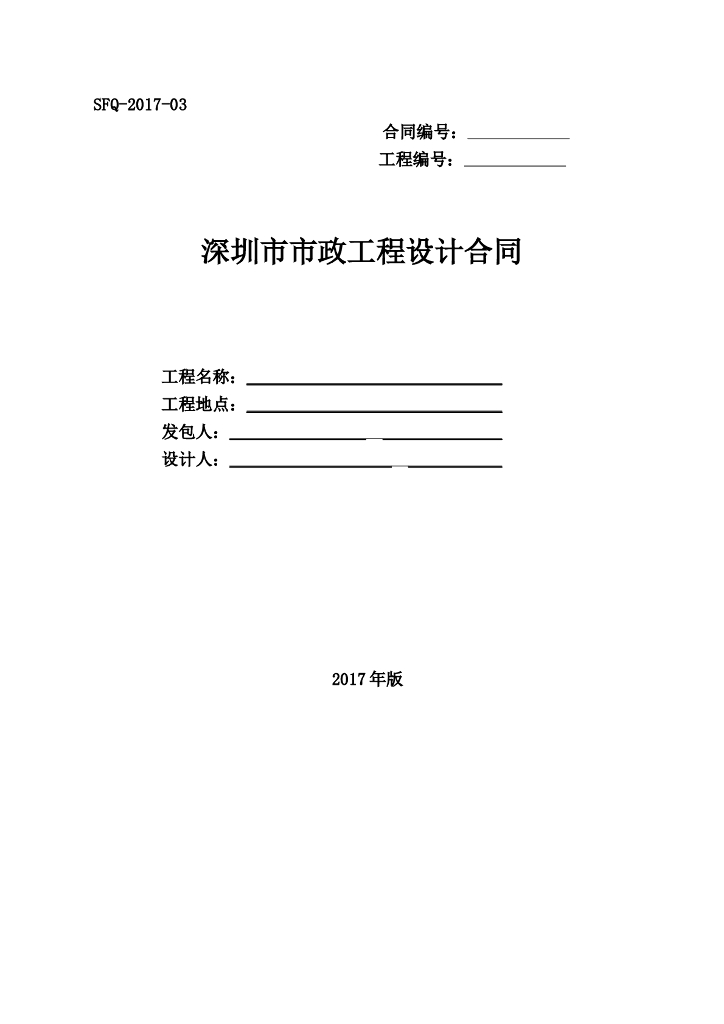 SFQ-2017-03 深圳市市政工程设计合同示范文本.doc