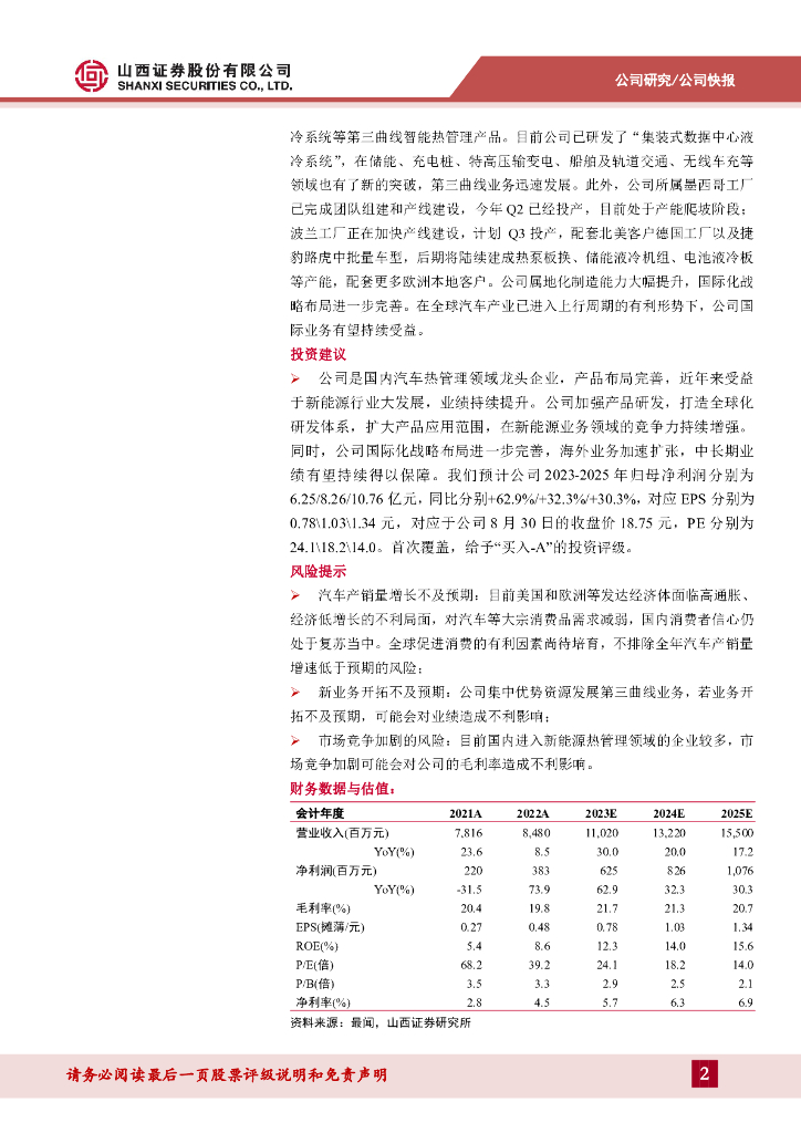 山西证券:银轮股份(002126)-业绩大幅增长,第三曲线及国际化业务开始提速.pdf