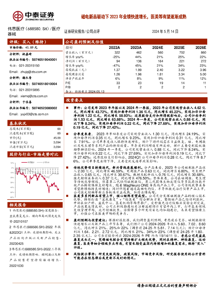 中泰证券:伟思医疗(688580)-磁电新品驱动下2023年业绩快速增长,医美等有望逐渐成熟.pdf