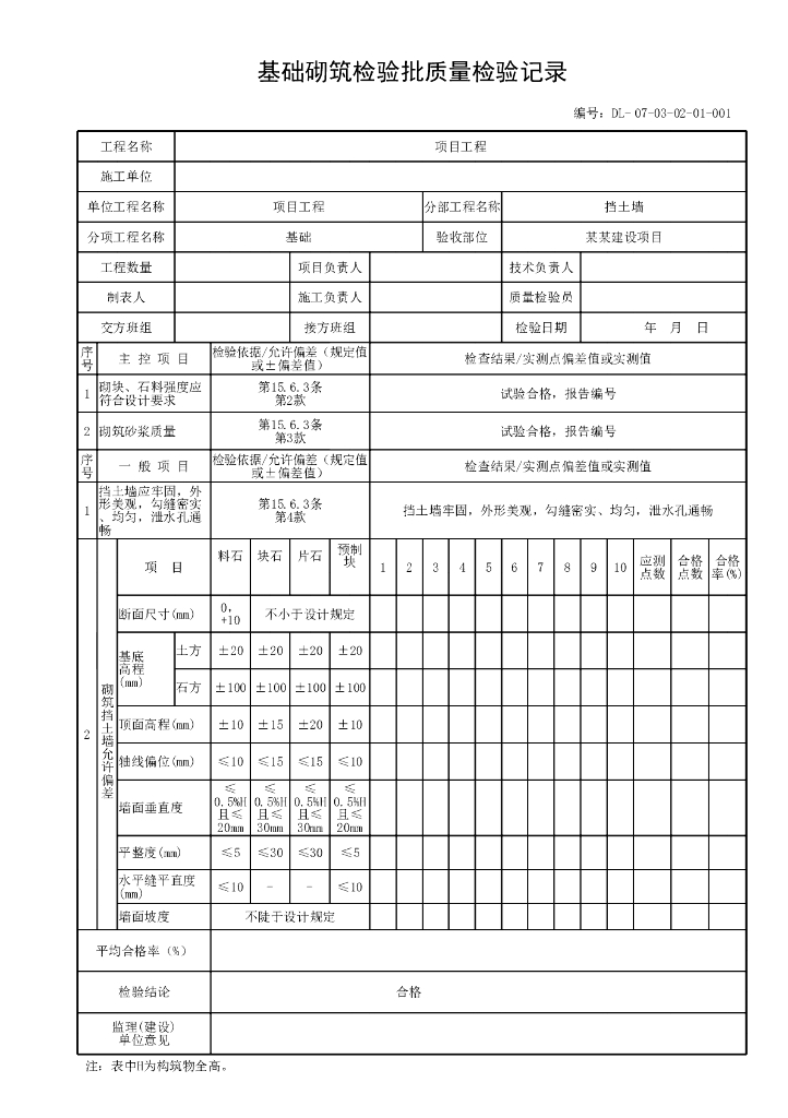 贵州省城镇道路工程砌筑挡土墙资料表格24P.pdf