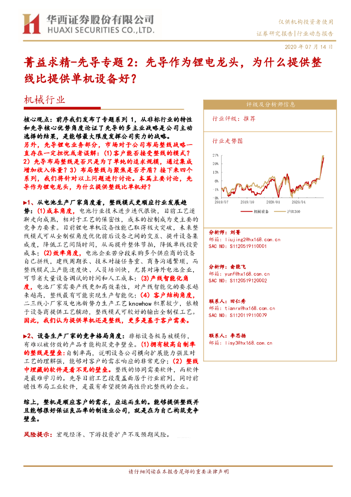 华西证券:机械行业:菁益求精-先导专题2:先导作为锂电龙头,为什么提供整线比提供单机设备好?.pdf