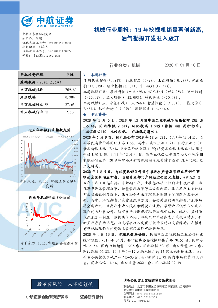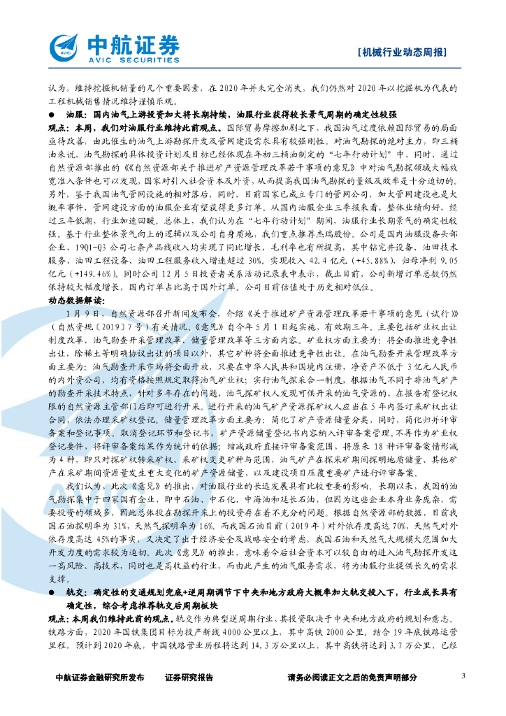 中航证券:机械行业周报:19年挖掘机销量再创新高,油气勘探开发准入放开.pdf