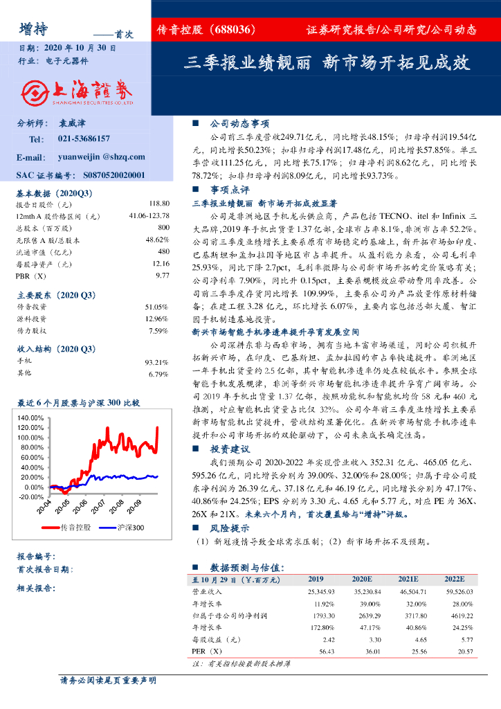 上海证券:传音控股(688036)-三季报业绩靓丽 新市场开拓见成效.pdf