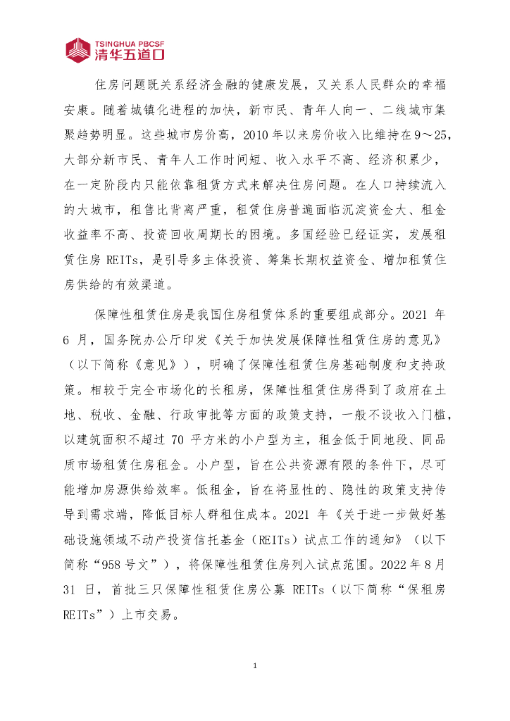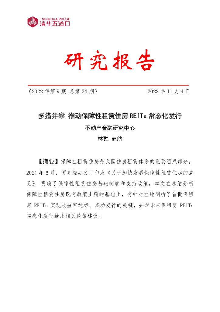 清华五道口不动产金融研究中心:2022年第9期多措并举 推动保障性租赁住房REITs常态化发行.pdf