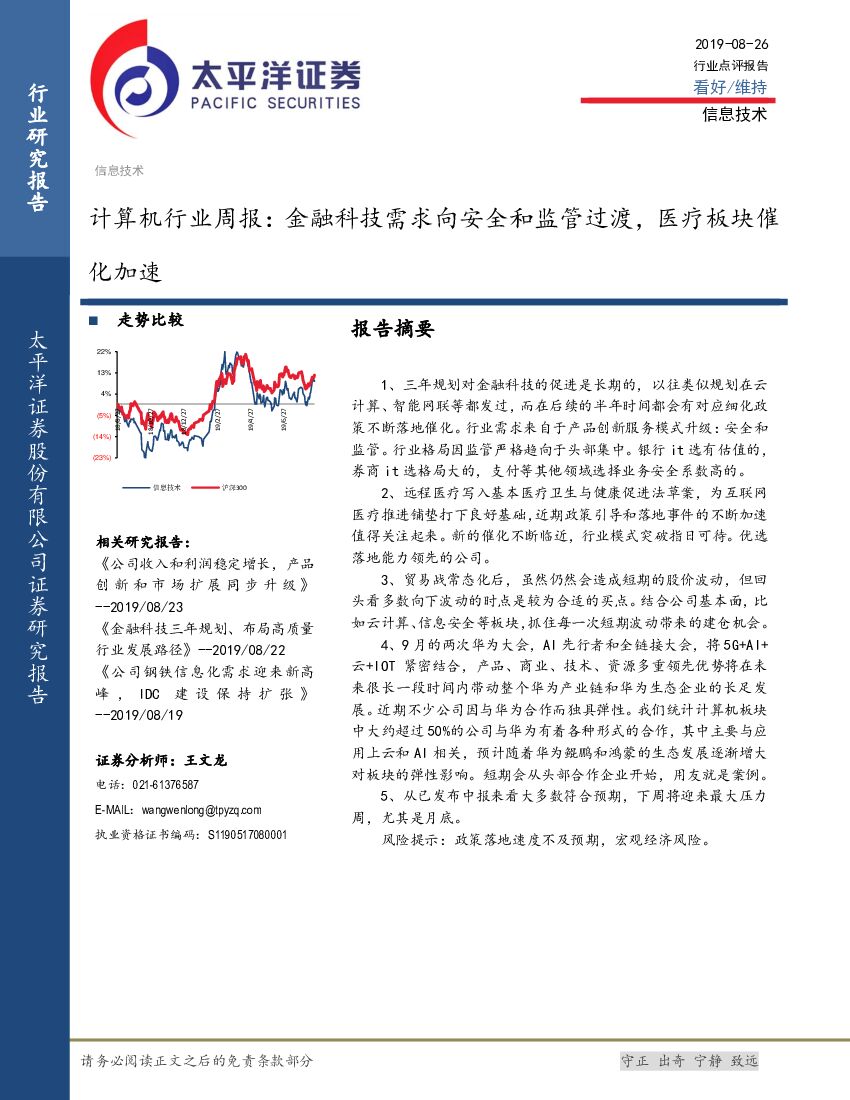 太平洋证券:计算机行业周报:金融科技需求向安全和监管过渡,医疗板块催化加速.pdf