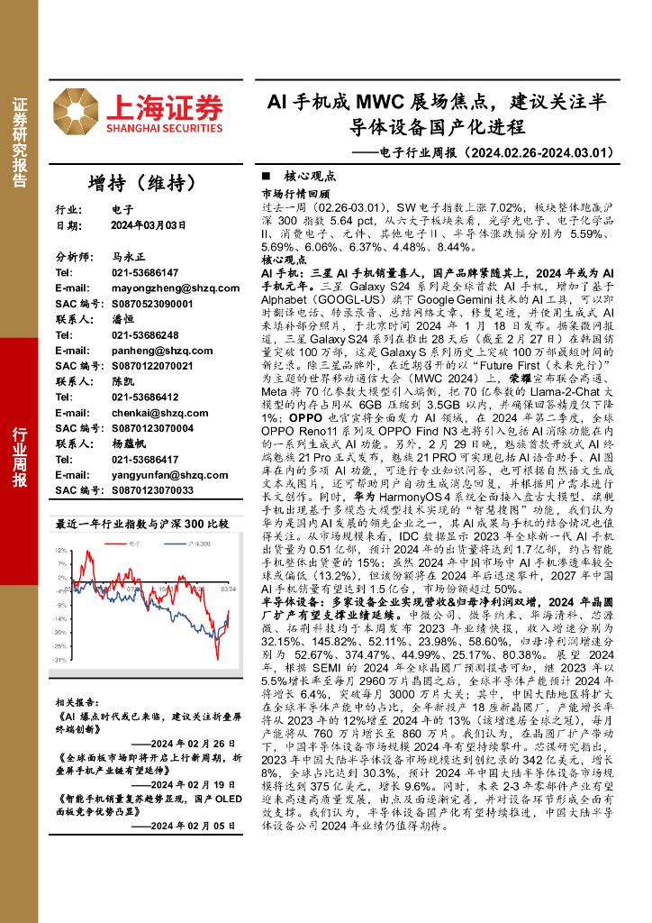 上海证券:电子行业周报:AI手机成MWC展场焦点,建议关注半导体设备国产化进程.pdf