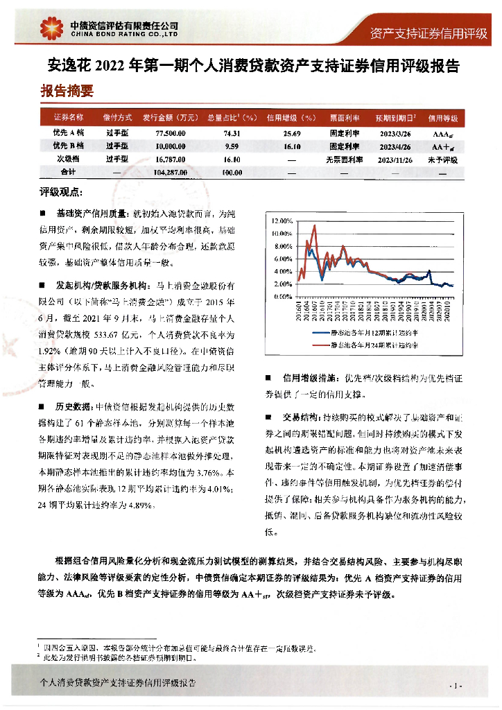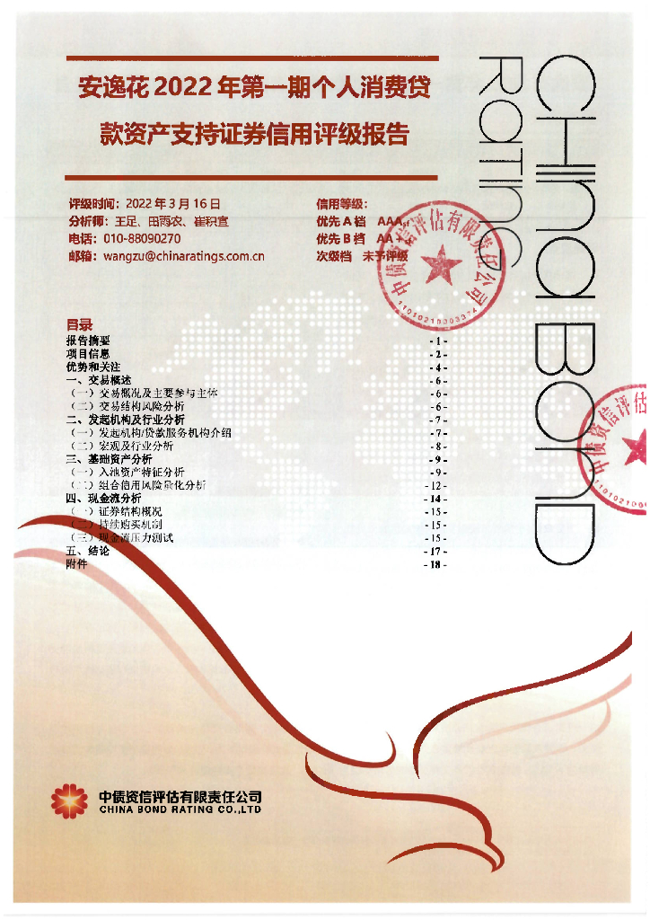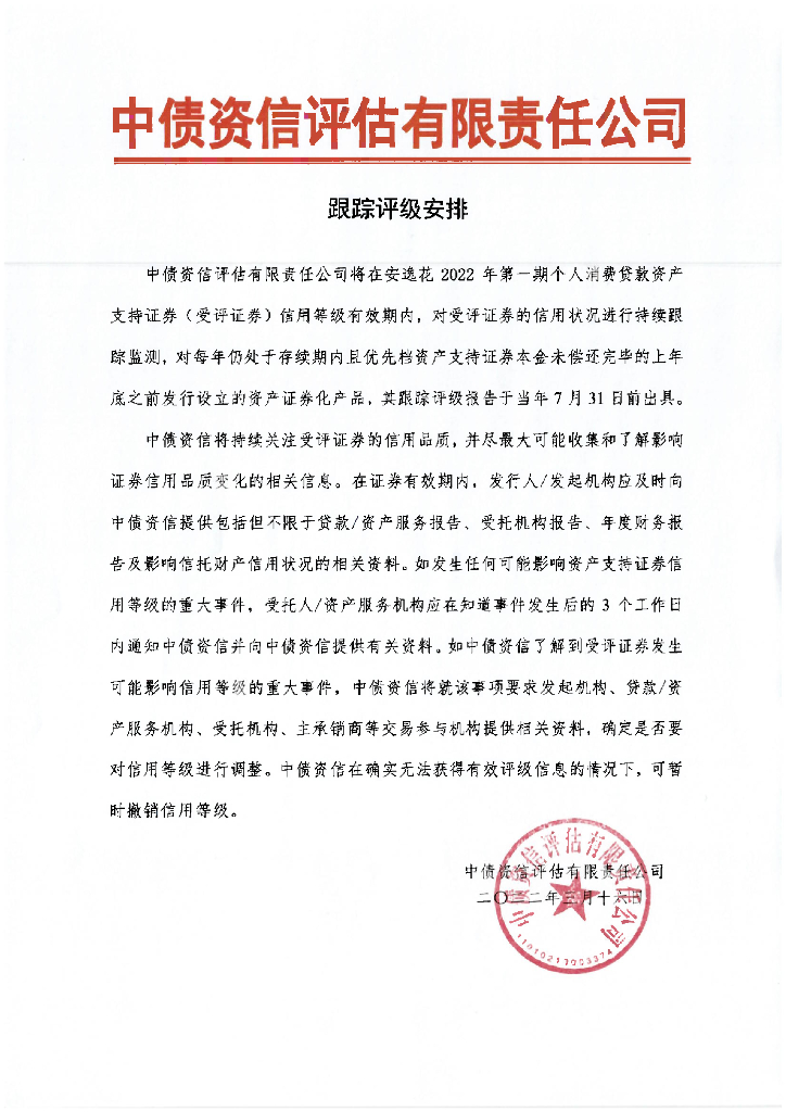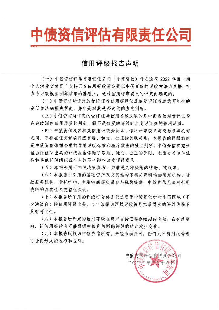 中债资信:安逸花2022年第一期个人消费贷款资产支持证券信用评级报告.pdf