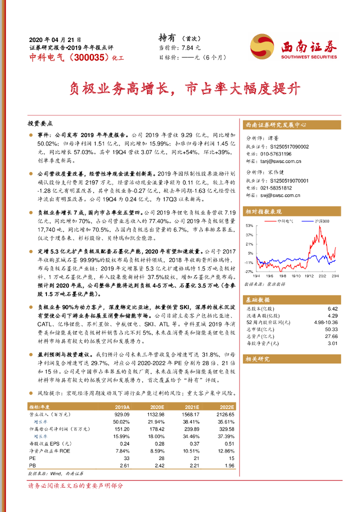 西南证券:中科电气(300035)-负极业务高增长,市占率大幅度提升.pdf