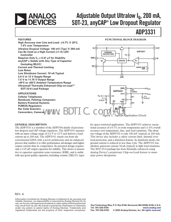 ANALOG DEVICES ADP3331 数据手册.pdf