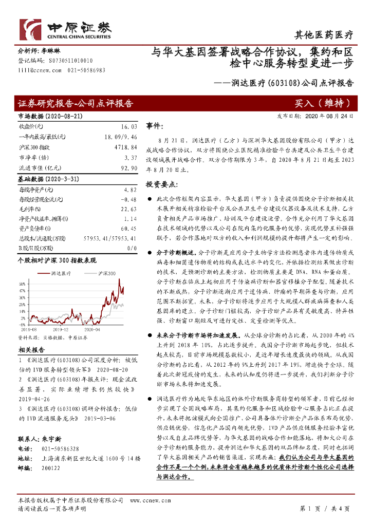 中原证券:润达医疗(603108)-公司点评报告:与华大基因签署战略合作协议,集约和区检中心服务转型更进一步.pdf