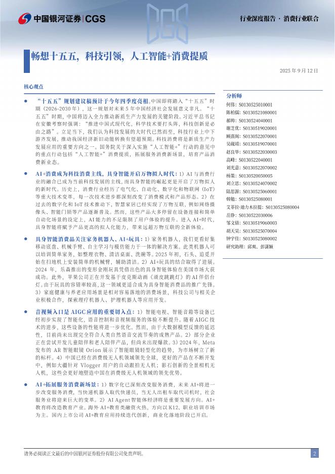 中国银河证券:消费行业联合:畅想十五五,科技引领,人工智能消费提质.pdf