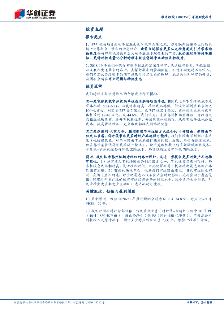 华创证券:顺丰控股(002352)深度研究报告:顺丰控股专项研究(一),更少成本,更多选择,从量化模拟鄂州机场对航空货运经济性提升说起.pdf