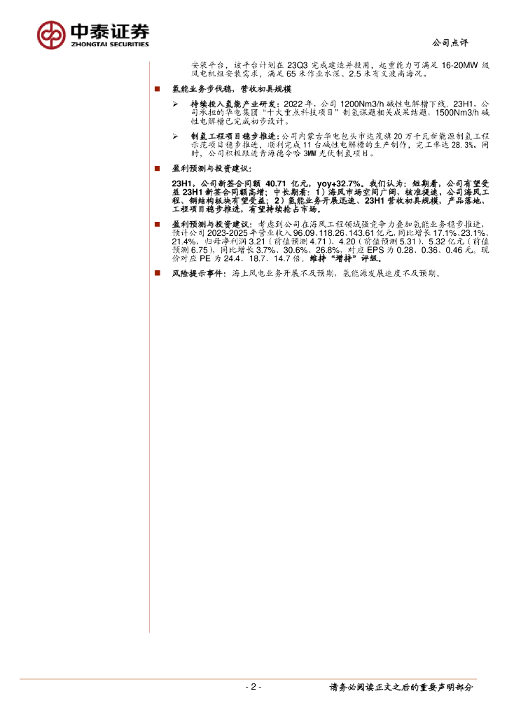 中泰证券:华电重工(601226)-2023年半年度报告点评:23H1业绩承压、毛利率修复,新签高增叠加氢能业务落地,看好业绩成长.pdf