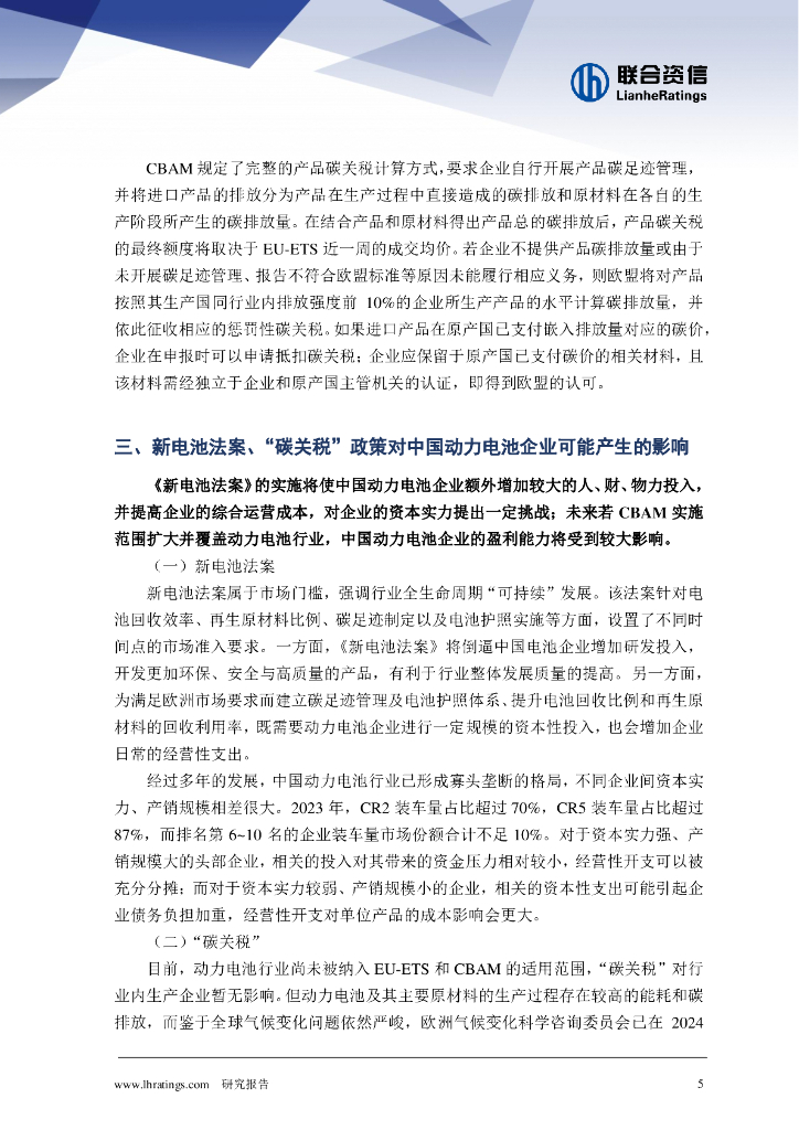 联合资信:欧盟新电池法案及“碳关税”政策对中国动力电池企业影响简析.pdf