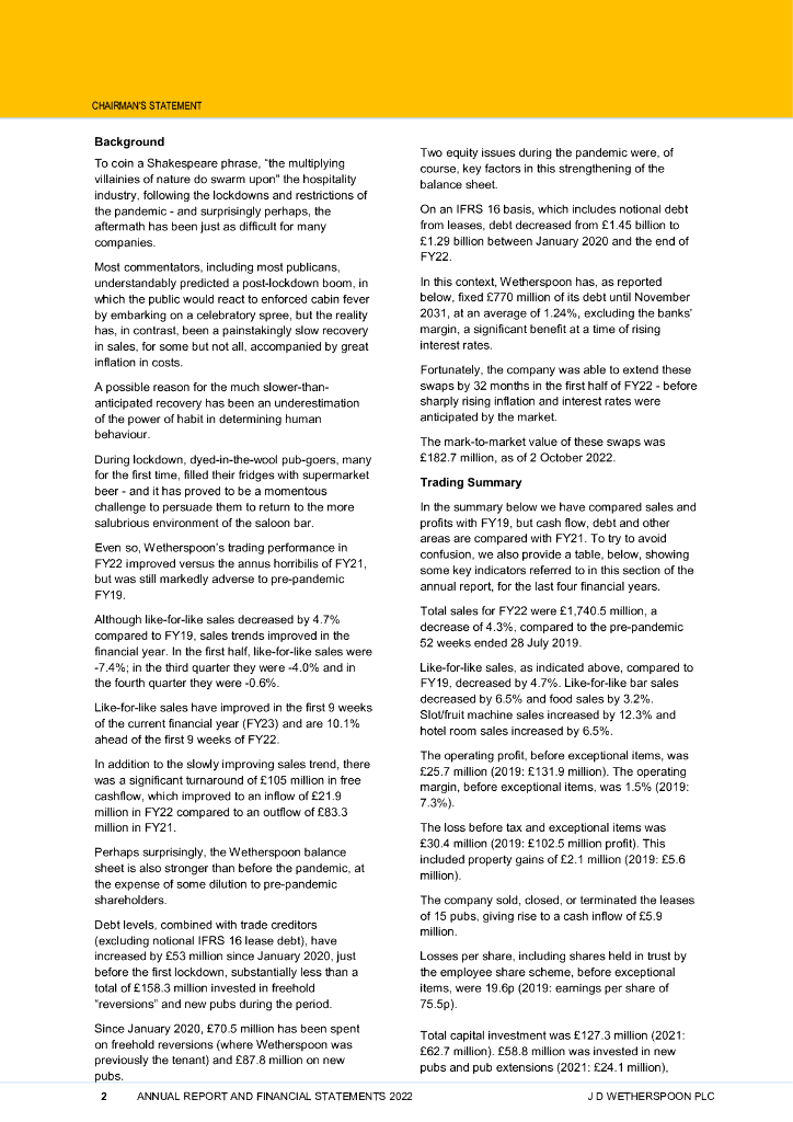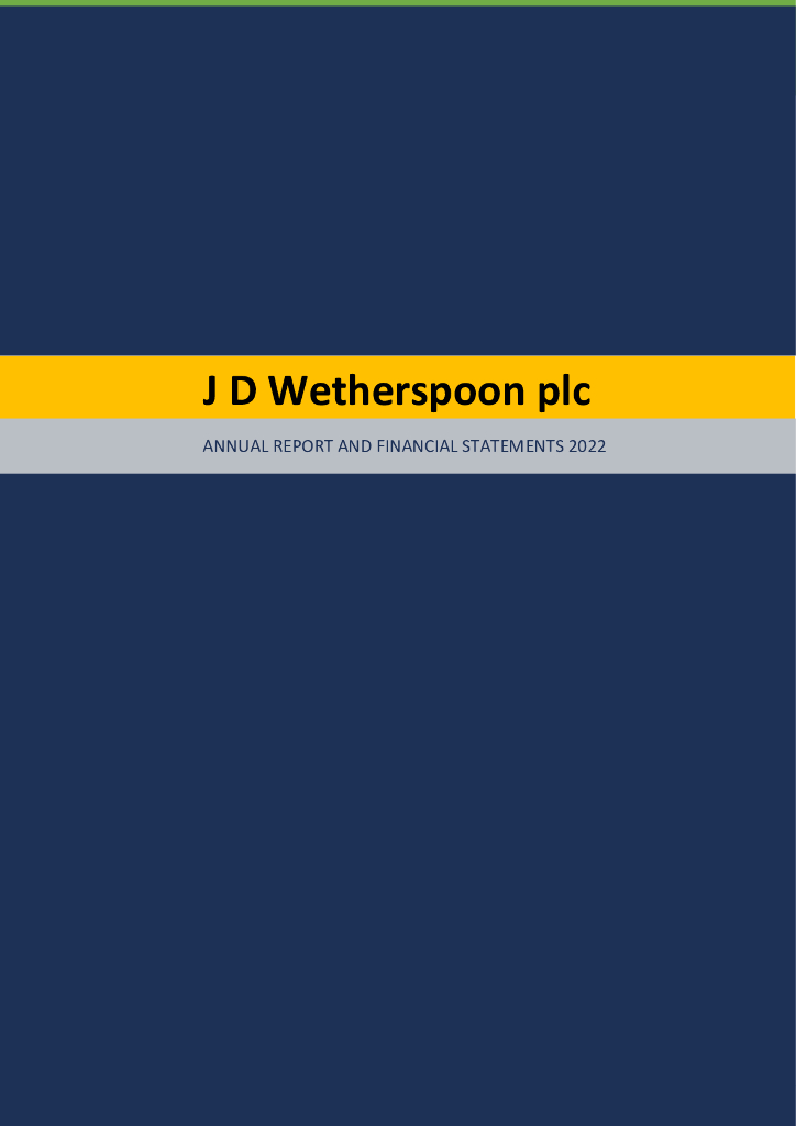 JD Wetherspoon plc(JDW)2022财年年度报告(英文版).pdf