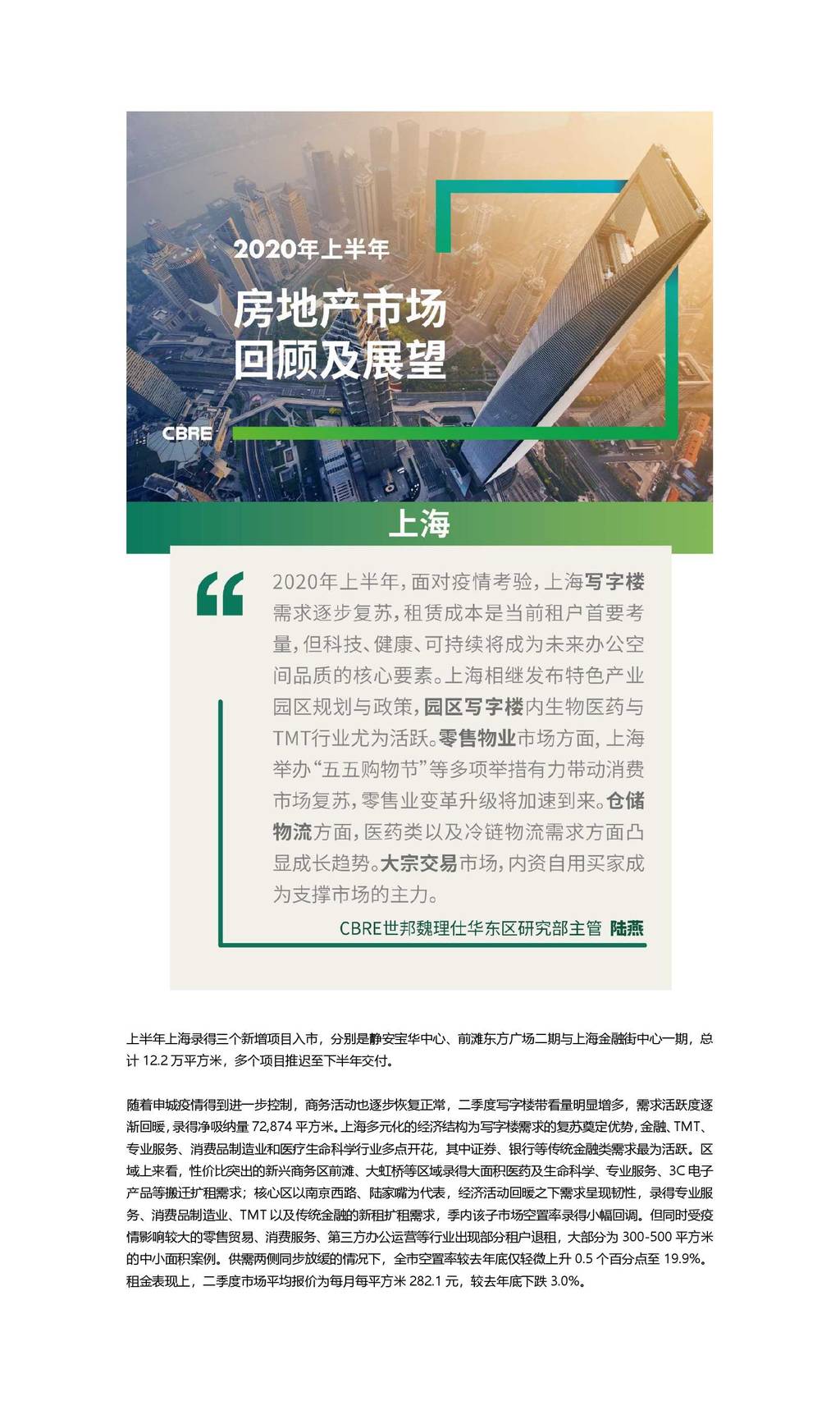 世邦魏理仕:2020年上半年上海房地产市场回顾及展望.pdf