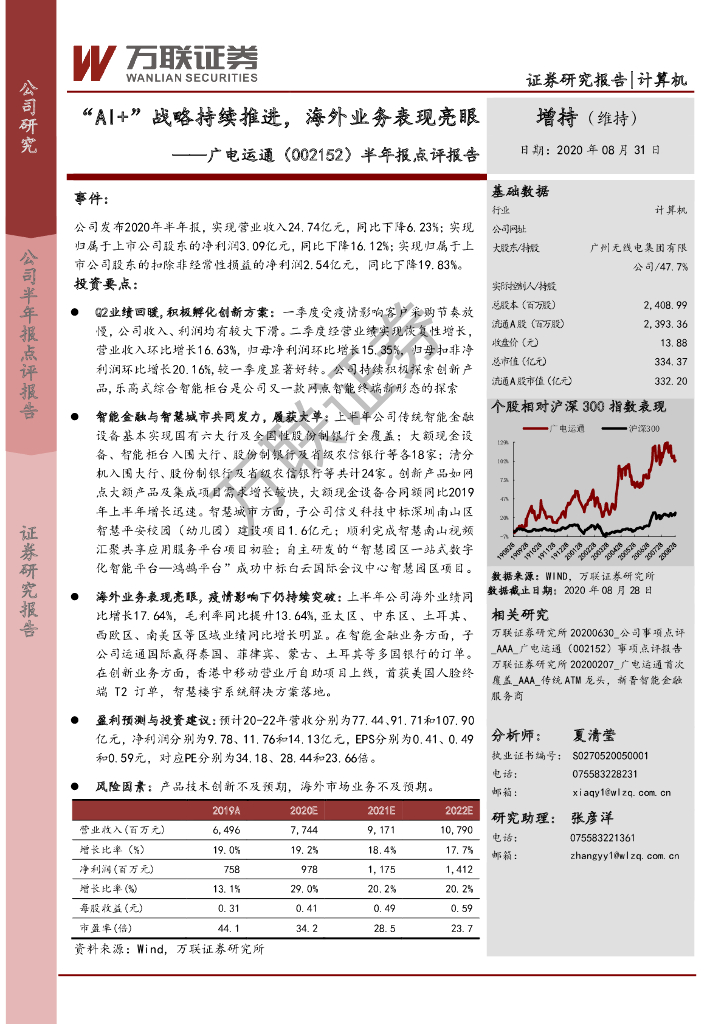 万联证券:广电运通(002152)-半年报点评报告:“AI+”战略持续推进,海外业务表现亮眼.pdf