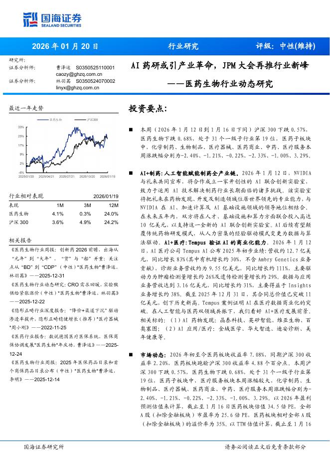 国海证券:医药生物行业动态研究——AI药研或引产业革命,JPM大会再推行业新峰.pdf