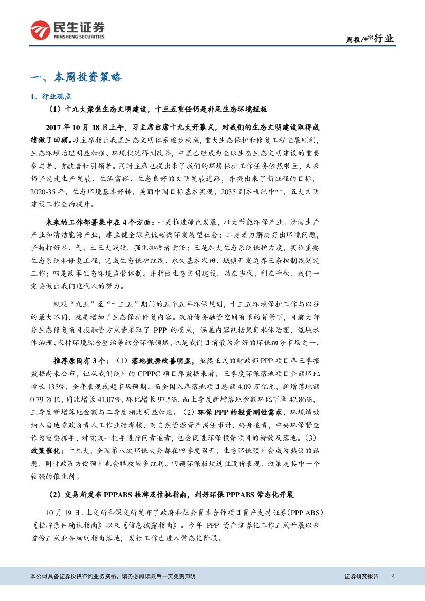 民生证券:环保行业周报:十九大聚焦生态文明建设,交易所发布PPPABS挂牌及信批指南.pdf
