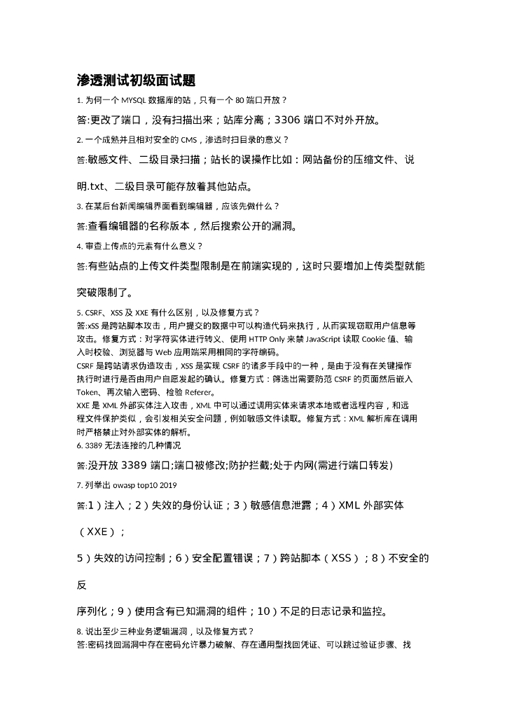 渗透测试初级面试题(二).doc