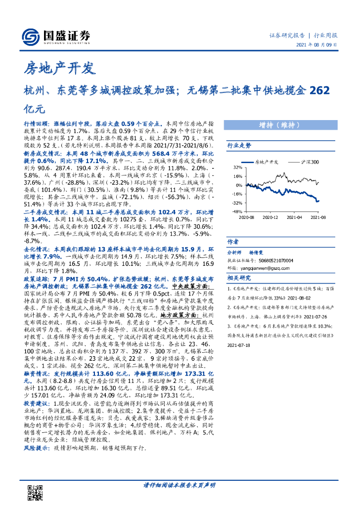 国盛证券:房地产开发行业周报:杭州、东莞等多城调控政策加强;无锡第二批集中供地揽金262亿元.pdf