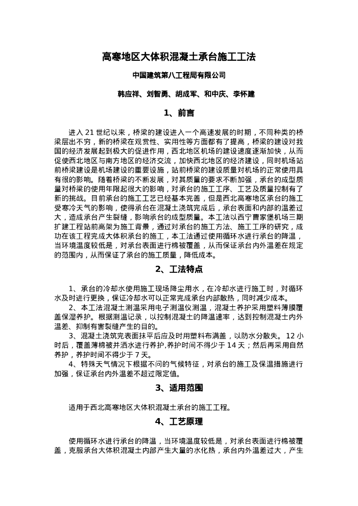QHGF-2022050 高寒地区大体积混凝土承台施工工法.doc