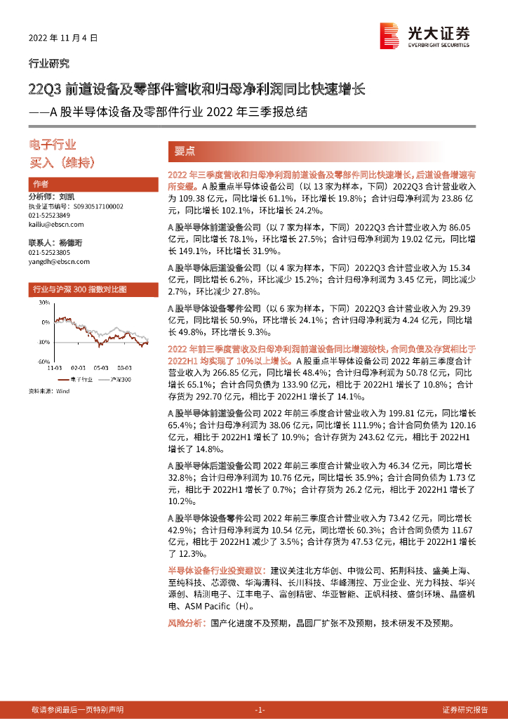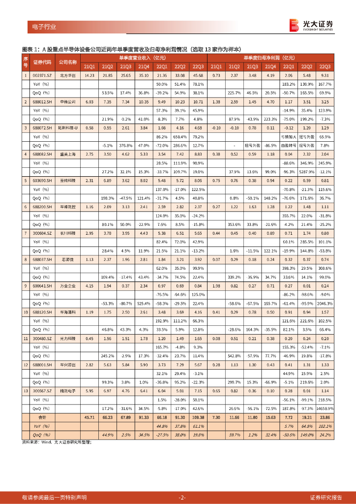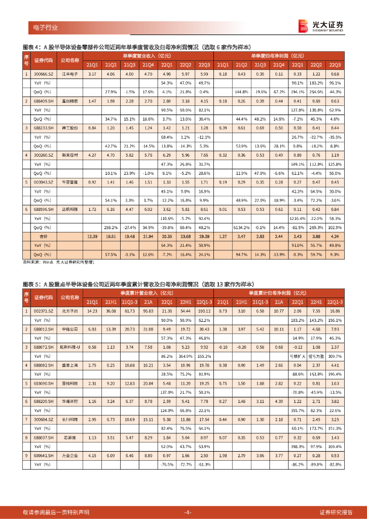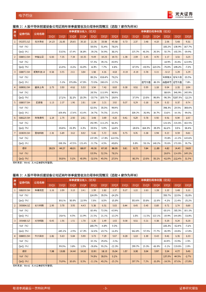 光大证券:A股半导体设备及零部件行业2022年三季报总结:22Q3前道设备及零部件营收和归母净利润同比快速增长.pdf