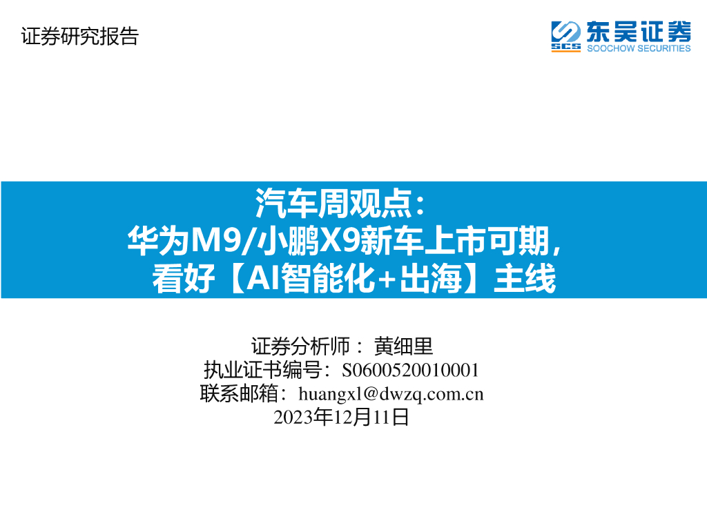 东吴证券:汽车周观点:华为M9/小鹏X9新车上市可期,看好【AI智能化+出海】主线.pdf