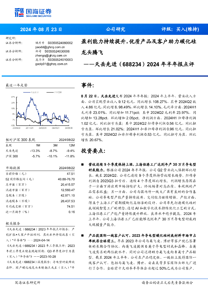 国海证券:天岳先进(688234)-2024年半年报点评:盈利能力持续提升,优质产品及客户助力碳化硅龙头腾飞.pdf