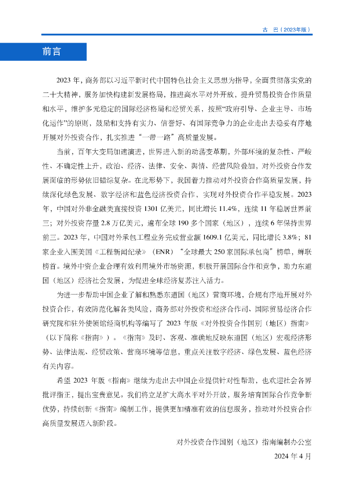 商务部:对外投资合作国别(地区)指南:古巴(2023年版).pdf