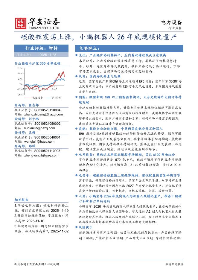 华安证券:电力设备行业周报:碳酸锂震荡上涨,小鹏机器人26年底规模化量产.pdf