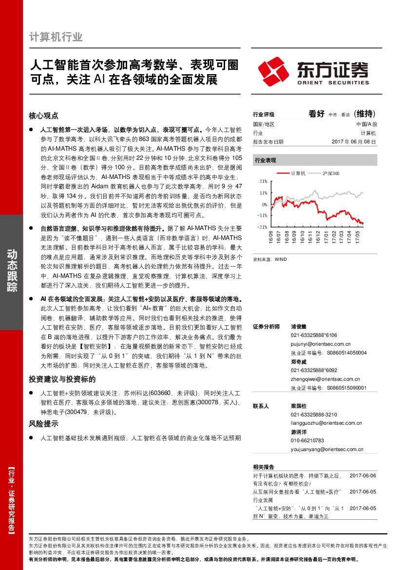 东方证券:计算机行业动态跟踪:人工智能首次参加高考数学、表现可圈可点,关注AI在各领域的全面发展.pdf