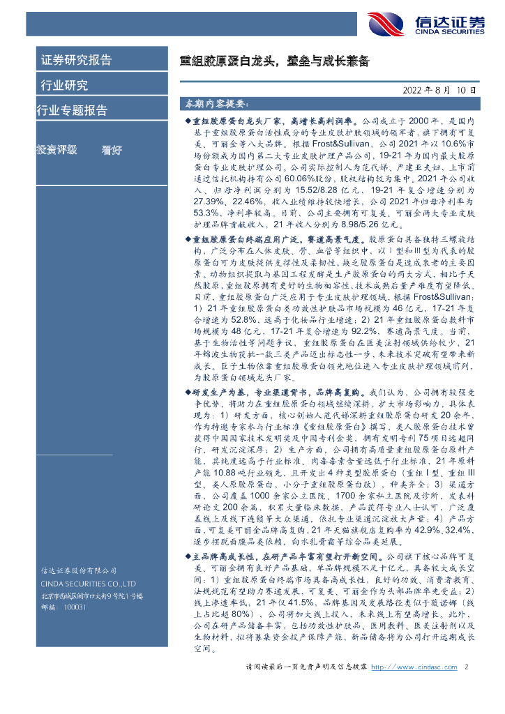 信达证券:化妆品专题报告之巨子生物:重组胶原蛋白龙头,壁垒与成长兼备.pdf
