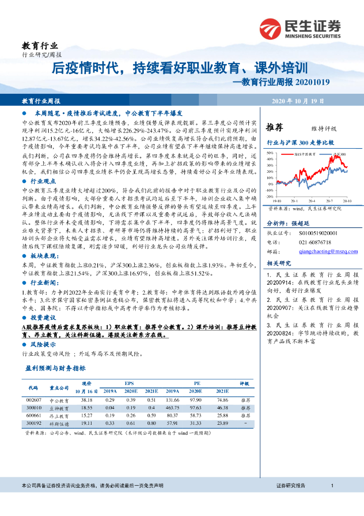民生证券:教育行业周报:后疫情时代,持续看好职业教育、课外培训.pdf