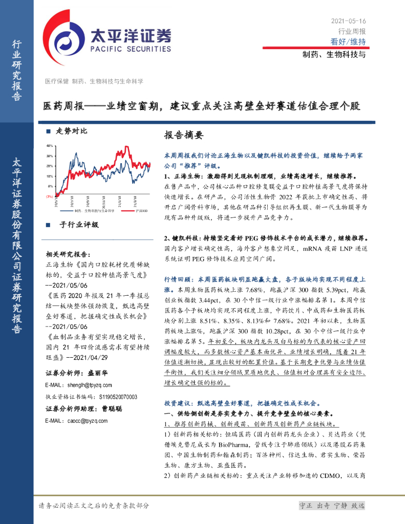 太平洋证券:医药周报:业绩空窗期,建议重点关注高壁垒好赛道估值合理个股.pdf
