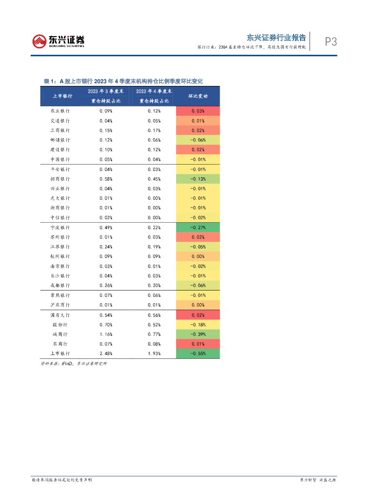 东兴证券:银行行业:23Q4基金持仓环比下降,高股息国有行获增配.pdf