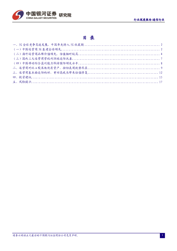 中国银河:通信行业深度报告:抢占5G网络全球发展制高点,国内运营商龙头迎来5G收获期新机遇.pdf
