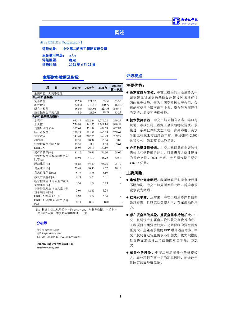 新世纪:中交第二航务工程局有限公司主体信用评级报告.pdf