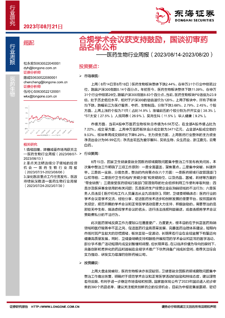 东海证券:医药生物行业周报:合规学术会议获支持鼓励,国谈初审药品名单公布.pdf
