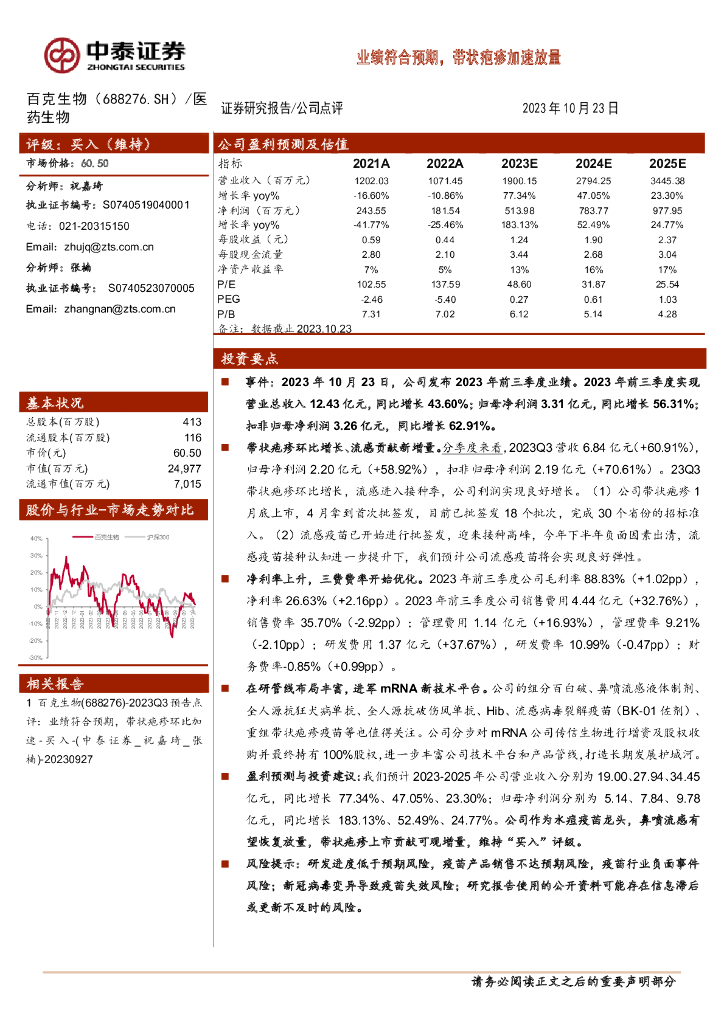 中泰证券:百克生物(688276)-业绩符合预期,带状疱疹加速放量.pdf