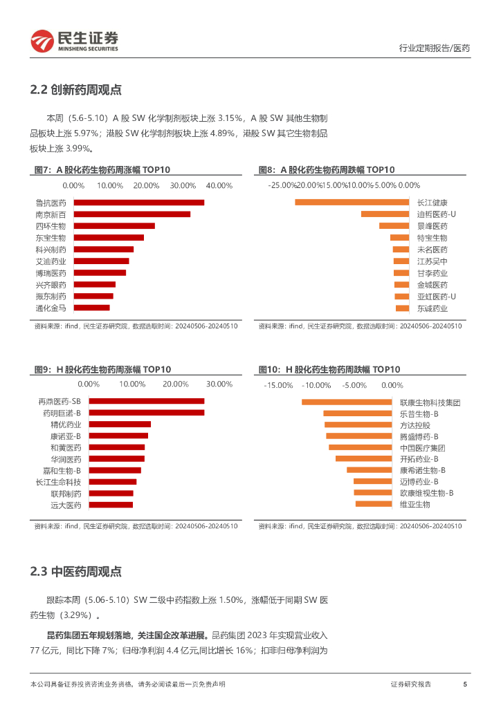 民生证券:医药行业周报:聚焦创新,关注医药板块底部需求变化.pdf