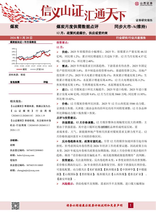山西证券:煤炭月度供需数据点评:12月:政策托底煤价,供应或受约束.pdf