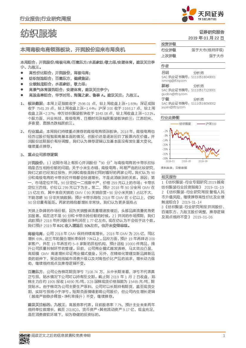 天风证券:纺织服装行业研究周报:本周南极电商领涨板块,开润股份迎来布局良机.pdf