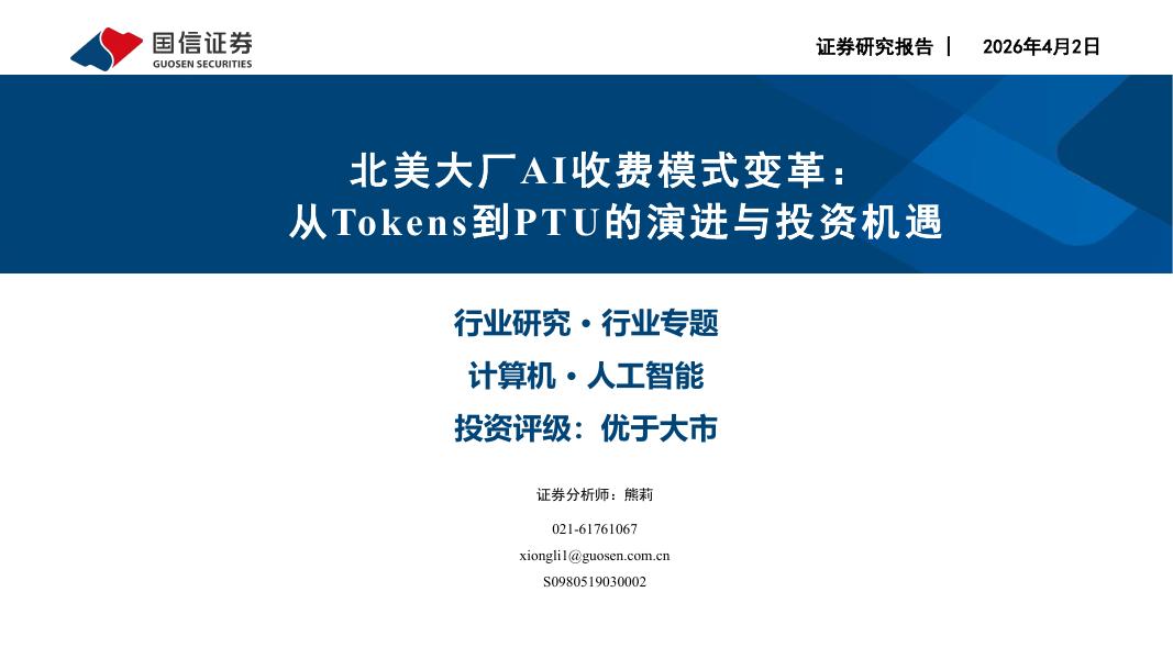 国信证券:计算机行业北美大厂AI收费模式变革:从Tokens到PTU的演进与投资机遇.pdf