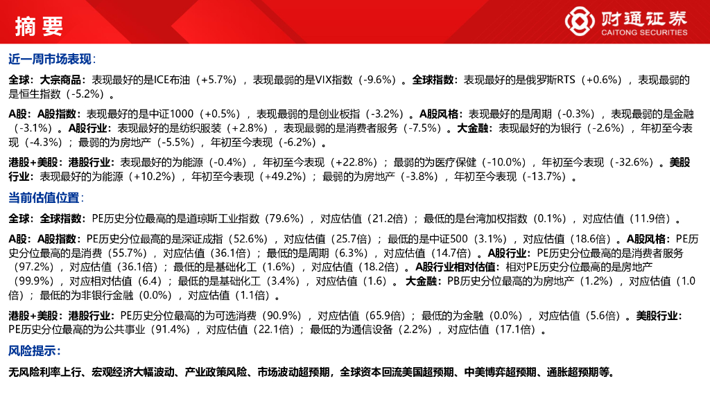 财通证券:全球估值观察系列二:上证与恒生PE均低于历史15%分位数.pdf