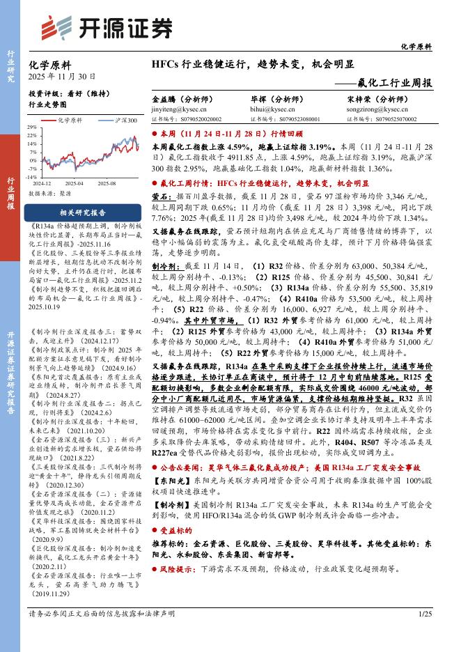 开源证券:氟化工行业周报:HFCs行业稳健运行,趋势未变,机会明显.pdf