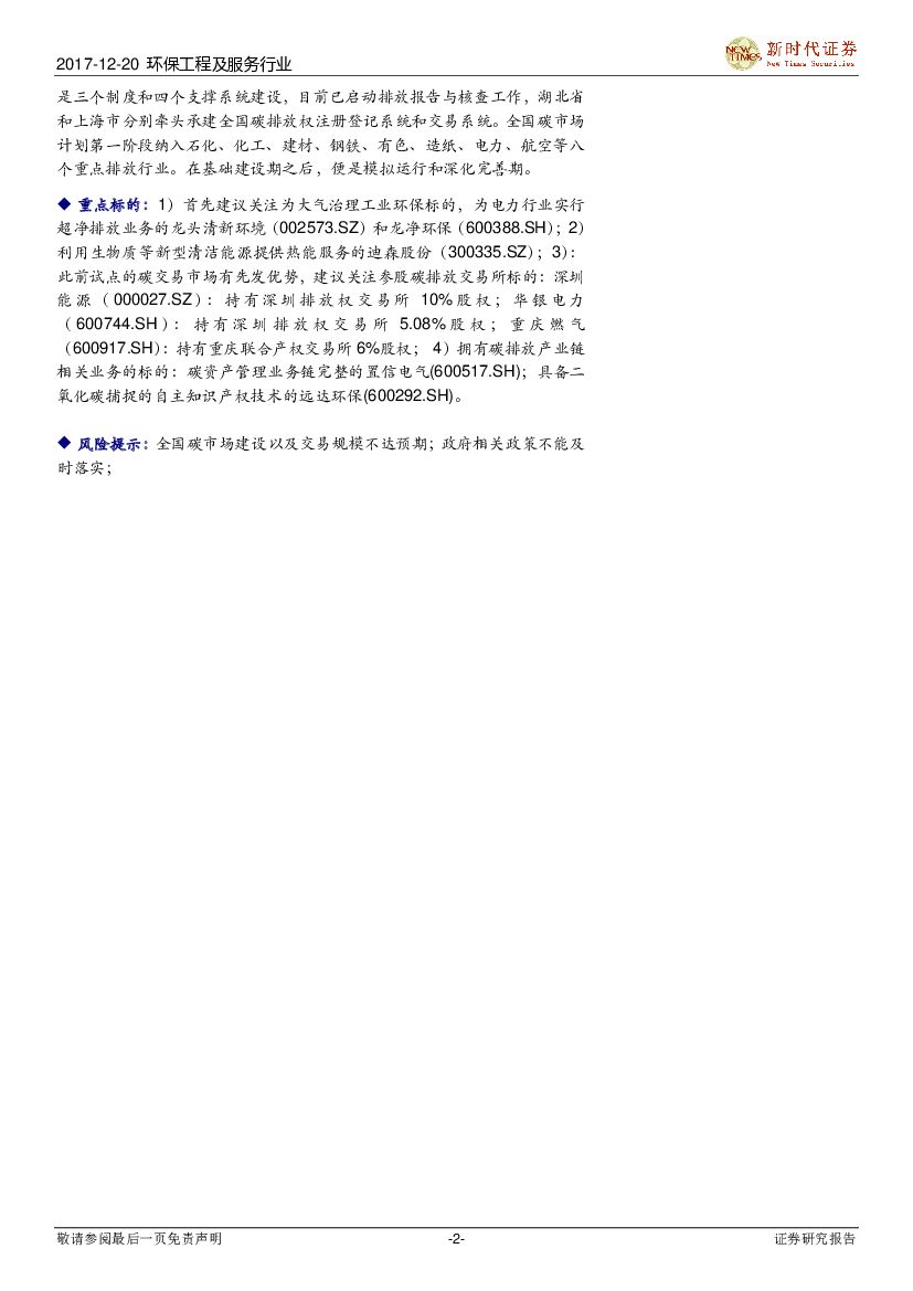 新时代证券:环保工程及服务行业:全国碳排放交易体系启动 发电行业先行.pdf