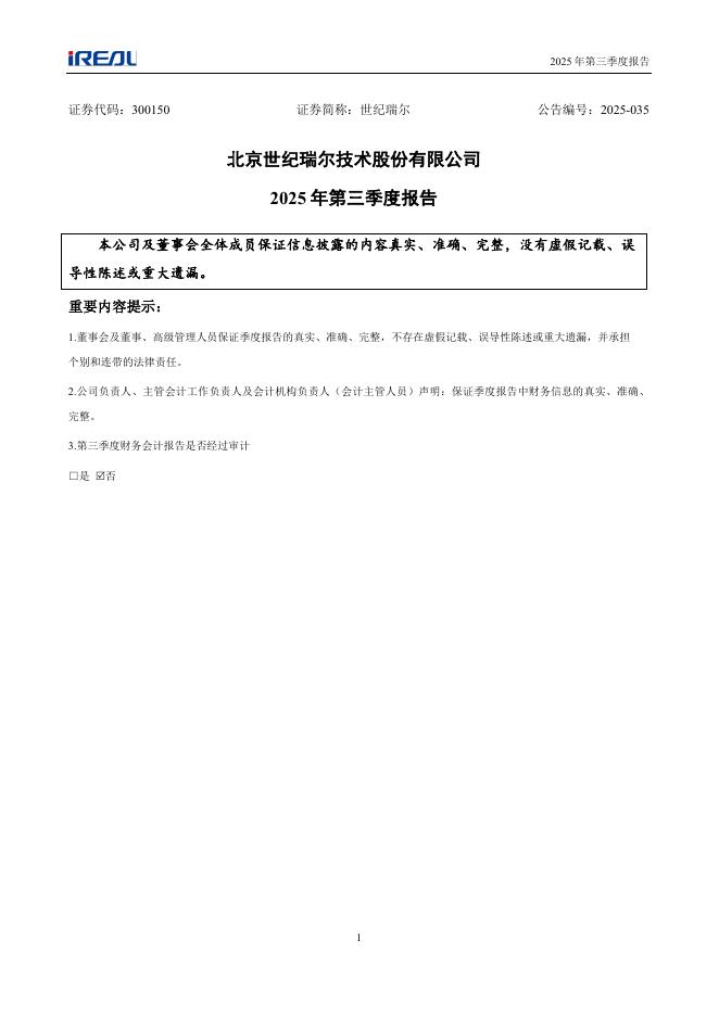 300150-世纪瑞尔:2025年三季度报告.pdf