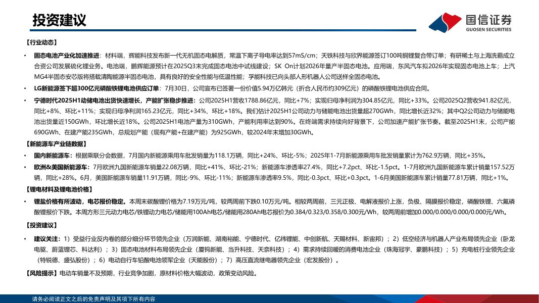 国信证券:锂电产业链双周评(8月第1期):固态电池应用场景持续丰富,宁德时代产能扩张稳步推进.pdf